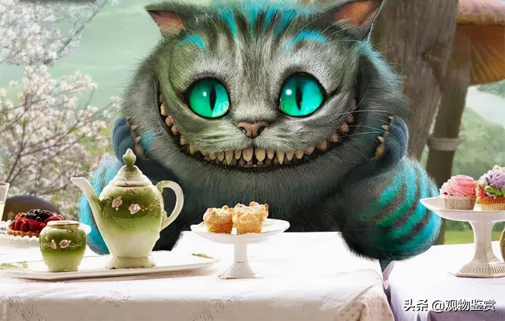 《爱丽丝梦游仙境》因为柴郡猫的存在而加分不少。柴郡猫占据了半边脸的那双硕大的眼睛加上月牙型的嘴巴、锯齿样的牙齿组成一张典型的笑脸,它十分从容优雅与幻化无常,淡定自若。