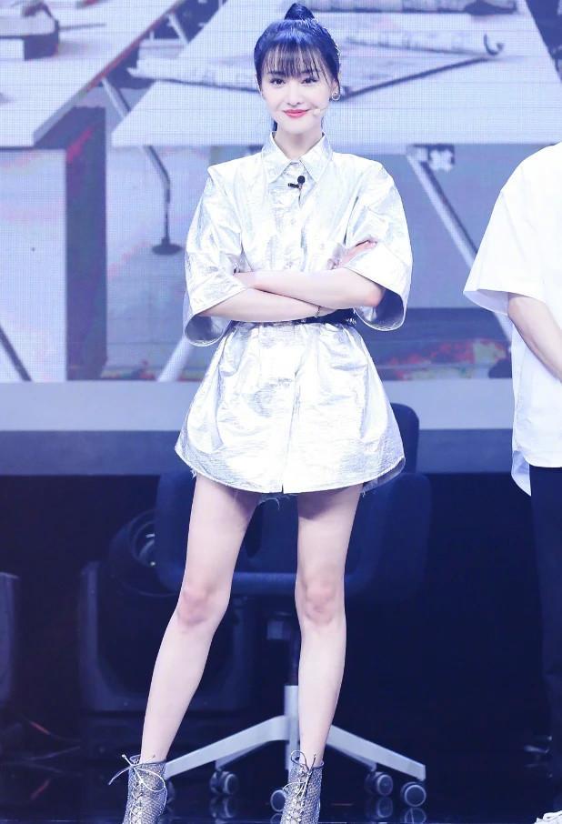 扎着马尾辫出镜的郑爽给人一种很清爽干净的感觉,凸显出年轻活力,说她才20岁我也信。而这次她虽然身穿基础版型的衬衫裙出镜,但是选择了银灰色这样的亮面材质却凸显出时髦摩登的感觉,使得造型凸显出时尚潮流的感觉。短裙的版型也会起到凸显腿长的作用,很好的将她的长腿凸显出来。当她穿上了银色的短靴之后,穿搭造型就会显得很有气质和气场,果然如今郑爽的穿搭衣品也提升了不少。