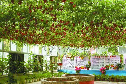 一说西红柿能长成大树,很多人都不相信,但是这确实不是危险耸听,是真正存的,在菜博会展览上,就展示了,这样的西红柿,如上图,大家可以看一下,是不是像一棵枝繁叶茂的大树,上面结满了西红柿,很美很漂亮,此西红柿市的冠幅有好几平方米,这样的“树”,见过这样的“西红柿树”的人不多,初次见的人都会感到很震撼。