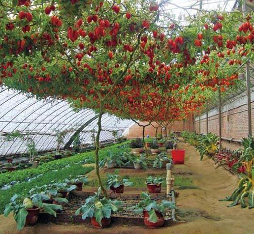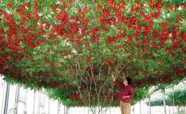 今日导读:西红柿长成参天“大树”,一棵能结1000斤,色美个大吃不完西红柿是我们常见的蔬菜,大的小的,都受欢迎,西红柿炒鸡蛋,西红柿汤,西红柿酱……都是孩子们喜欢的食物,但是我们常见的西红柿,都长得植株矮小,结果量也是有限的……不过今天咱们要分享的西红柿与常见的西红柿不一样,它能长成参天大树,一棵就能结果上千斤,且色美个大,一种一棵就吃不完,如下图,看看你见过吗?