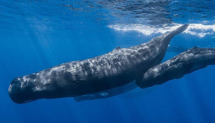 为适应水下环境,鲸类的前肢进化为鳍,后肢退化,并生出水平的尾鳍。鼻孔移生至头顶,须每隔一段时间将鼻孔露出水面置换氧气。无耳廓,但听力极佳。