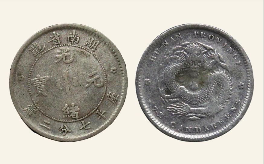 光绪二十三年(1897年)湖南巡抚陈宝箴以“湘省钱少赈给碎银诸多窒碍”及“来自外省究不若本省自铸之较为近便”,自广东取得小型印花机一架并由粤局代刻币模,在长沙城内试制小银角,此乃湖南设局造币之始。翌年(1898年) 英国伯明翰造币厂交运设备若干抵湖南。
