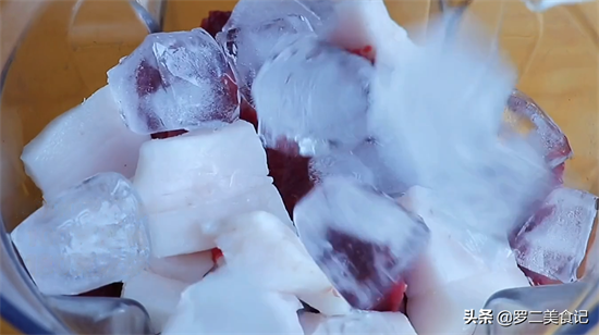 4.其他牛肉放入料理机中,往里面加入100克肥肉,180克冰块。开启按键,把肉打成糜。肥肉是猪肉,牛肉是很少肥油的。