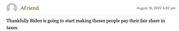 “谢天谢地,拜登将开始让这些人支付他们公平的份额的税收。”