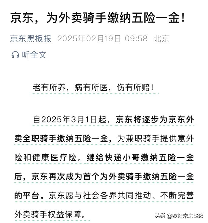 京东,为外卖骑手缴纳五险一金!