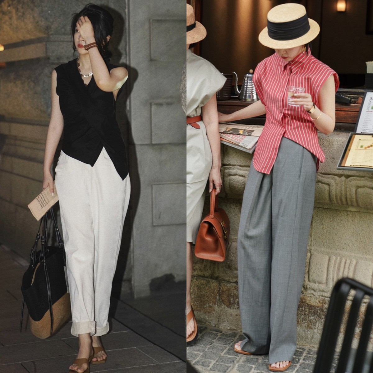 小个子的姐妹们一定要试试九分长度的阔腿裤,九分阔腿裤上身会在脚踝处打造出恰到好处的露肤度,轻盈又时髦,还能在视觉上非常有效的拉长腿部线条,就算搭配上长款上衣也不用担心会穿出压制身高的效果。