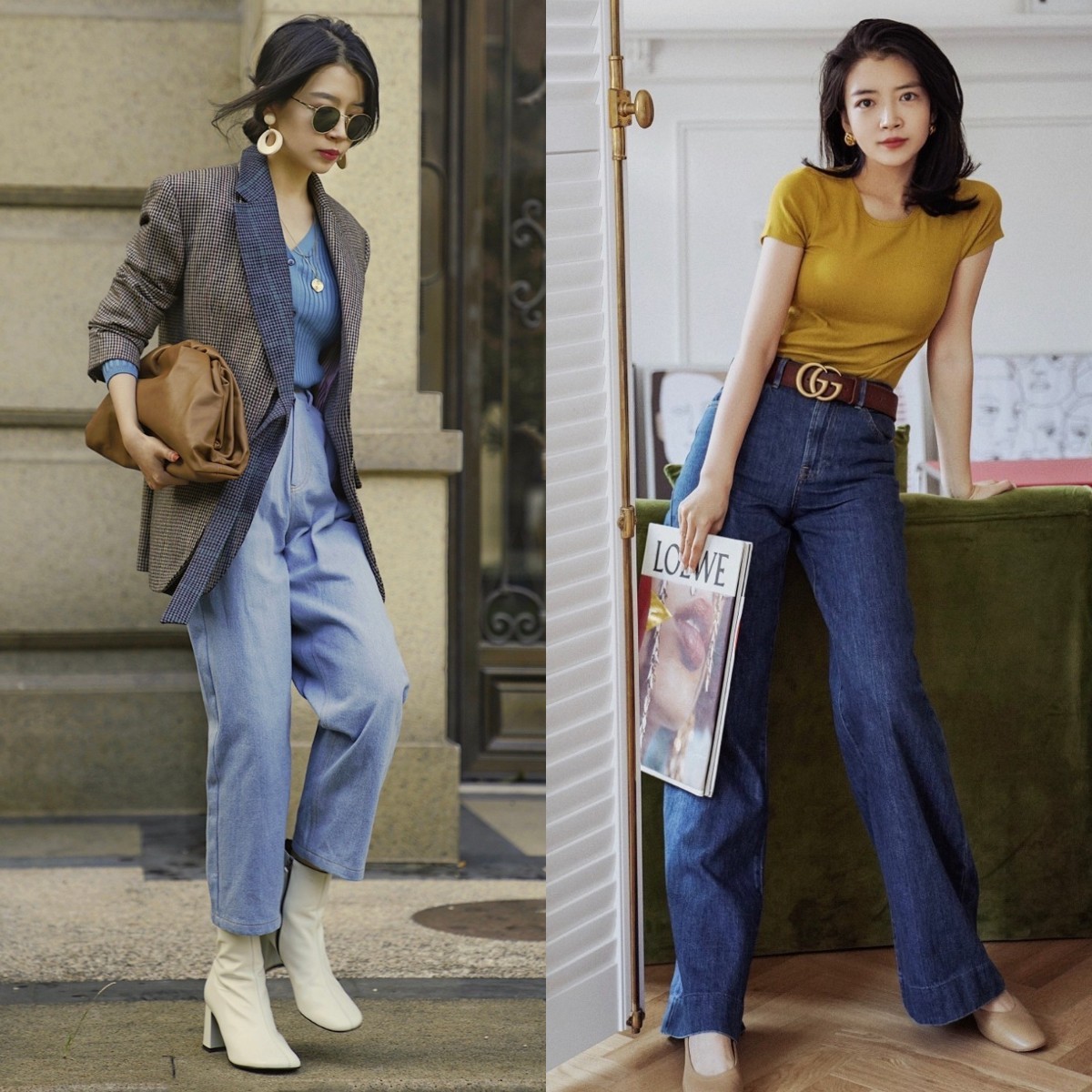 牛仔材质的阔腿裤自带简约休闲的时髦范儿,是日常穿搭的不二之选。初春季节可以选择下图中“浅蓝色系“的牛仔阔腿裤,整体较为清浅的配色更适配这个季节的氛围感,轻盈时髦还百搭。