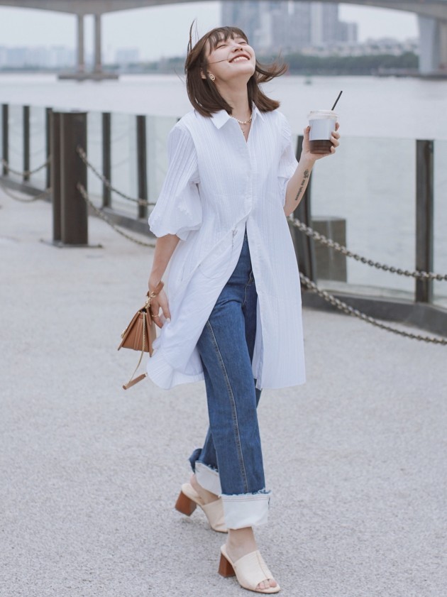 初春季节也可以尝试下图中衬衫的叠穿搭配,选择修身款的内搭或西装马甲来进行叠加组合,提升穿搭层次感的同时也能很好的满足这个季节的穿衣需求。