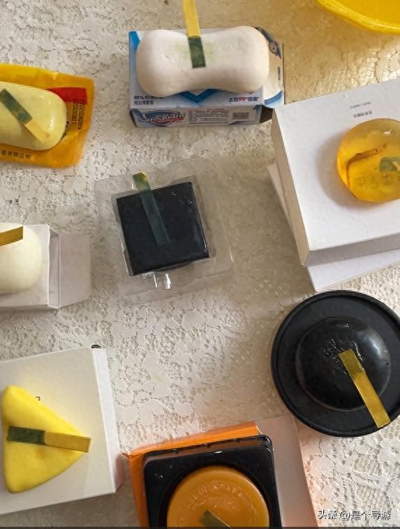 三角形的皂就是芝士皂,以奇特的外形吸引眼球,看起来像奶酪的样子,皂的身上有一些小坑,闻起来特别的香甜,那种奶香味,但是用起来就不敢恭维了,拉丝长黏糊糊的拉的那个丝就像是蜂蜜一样,清洁效果一般,黏糊糊的我不是很喜欢,看你侧重点是什么吧!洗完以后脸感觉油腻腻的个人感觉不太喜欢这一点,其它都还好。