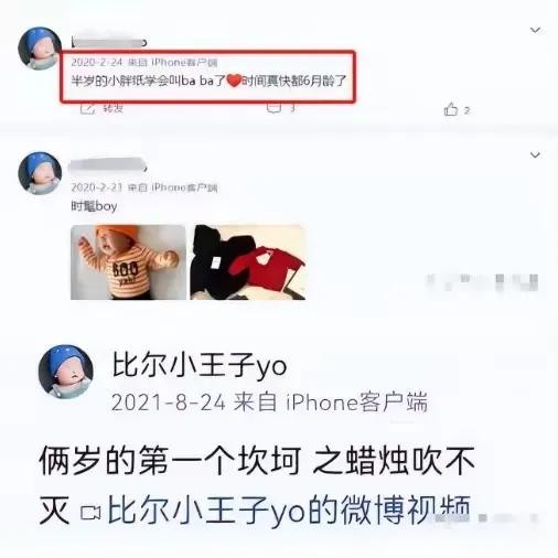 还有个特别奇怪的事儿,微博上有个孩子,从一出生就有自己的社交账号。