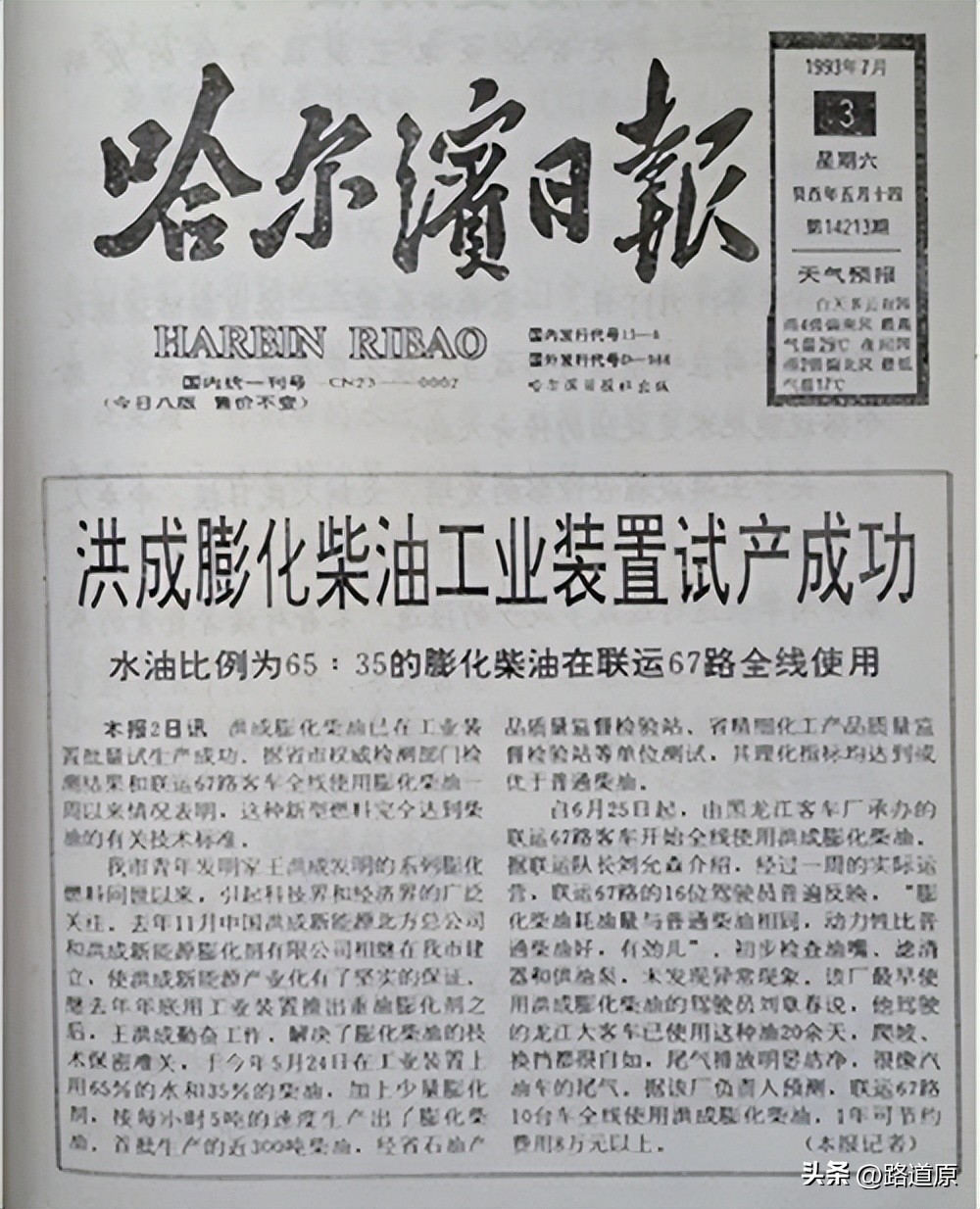 哈尔滨公共汽车公司有十几辆公交车率先用上了这种膨化燃料,在首发仪式上,十几辆公交车披红挂彩地上路了。当时还有一些省市领导在现场参加剪彩。