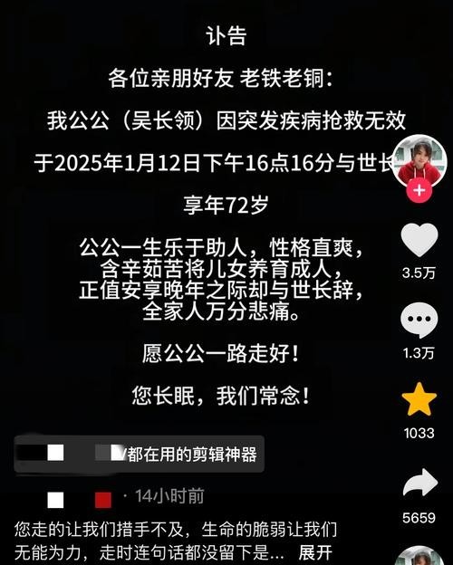 但是仅仅相隔两天,13号的时候,其儿媳在网上发布讣告:公公吴长领在1月12日下午离世。