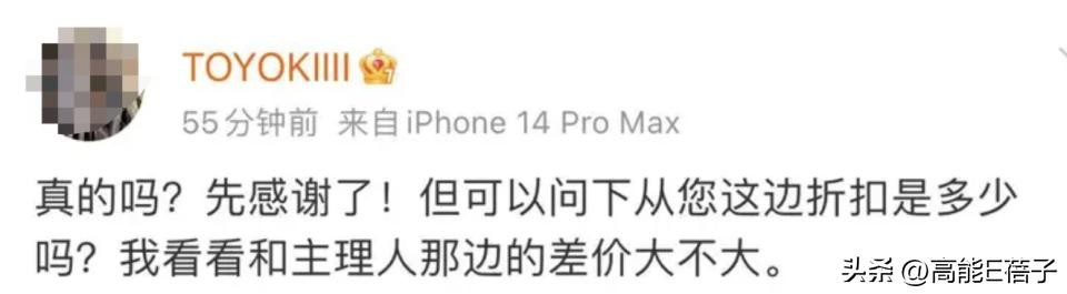 但Toyoki也没闭麦,回应也带有点yygq,旁敲侧击问造型师“我看看和主理人那边的差价大不大”。