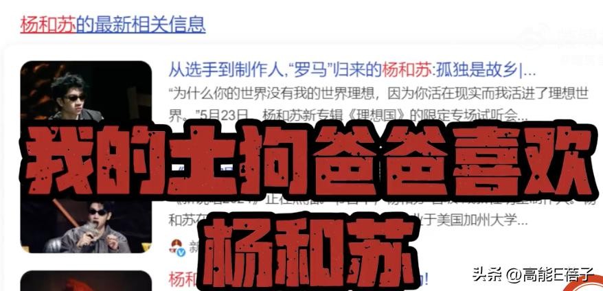 歌词很有意思,前面先提到了“我的土狗爸爸喜欢杨和苏”,他看杨和苏得冠军一个人偷偷哭,这说的是杨和苏之前在巅峰对决夺冠的梗;
