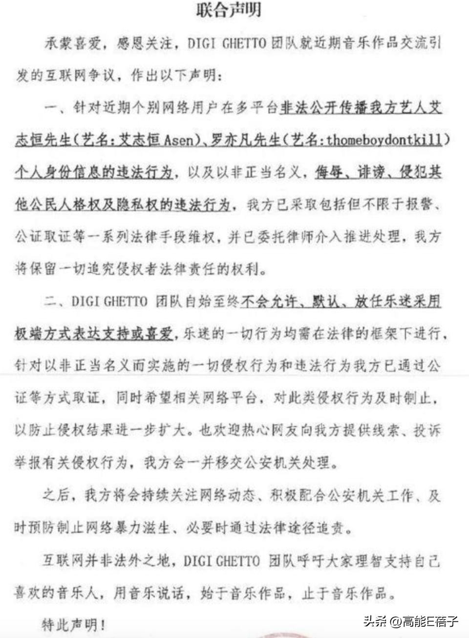 于是,事情就由rapper之间的beef变成了律师函警告了。