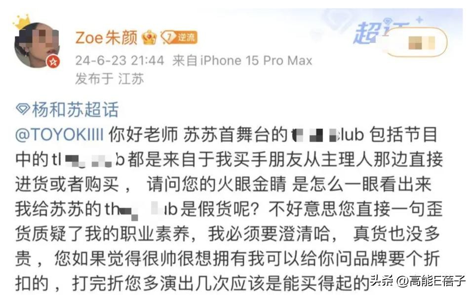 结果这乱箭射到了杨和苏的造型师,她说那个品牌的衣服是她从买手朋友从主理人处进货购买的,不是假货;