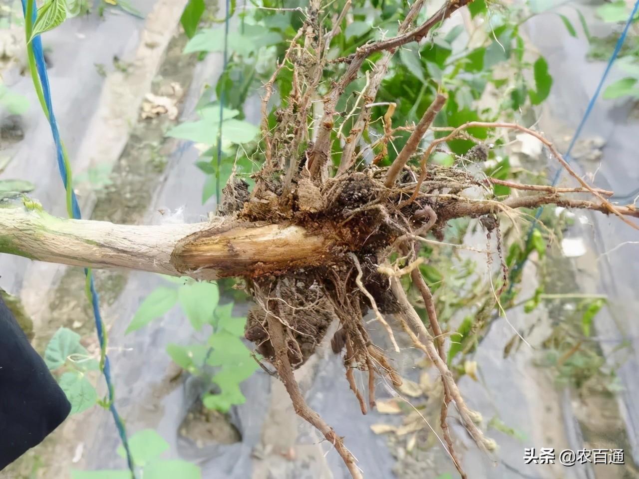 根系被侵染后变褐,皮层腐烂,导致植株青枯。