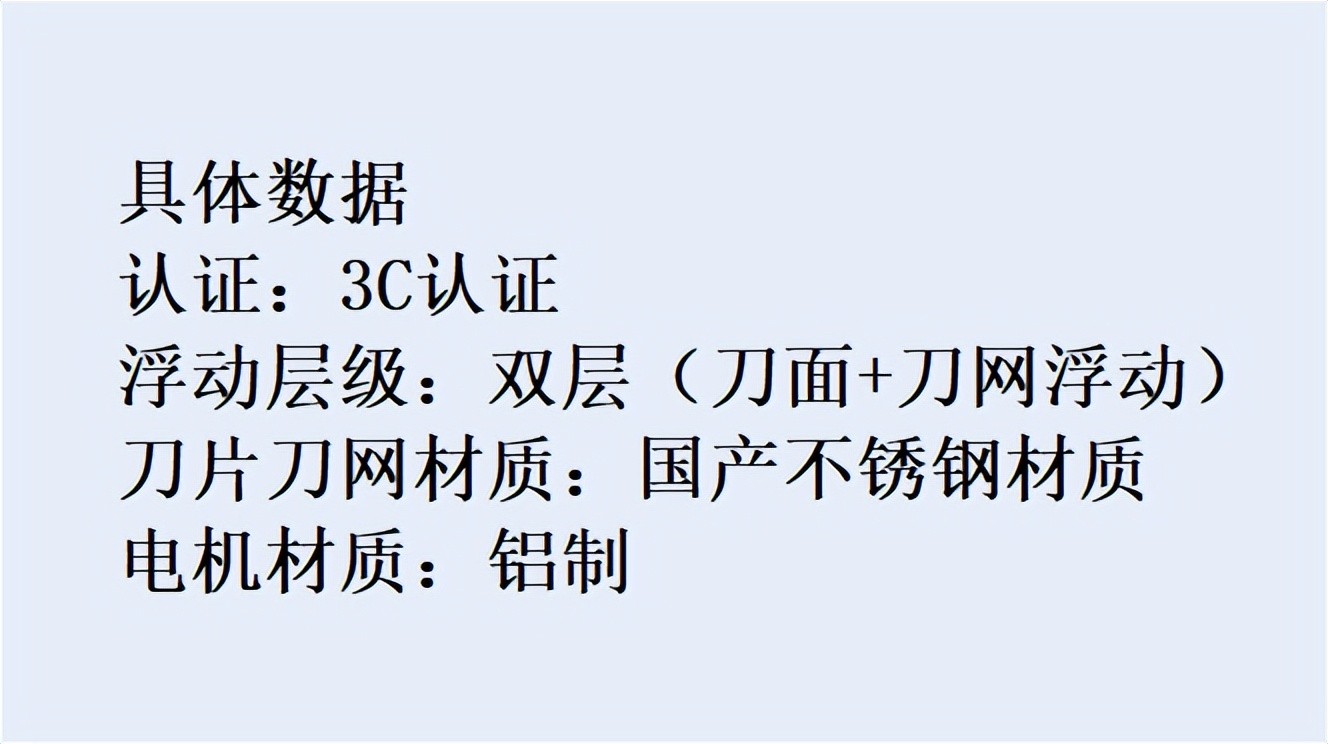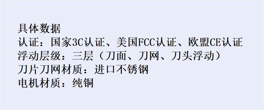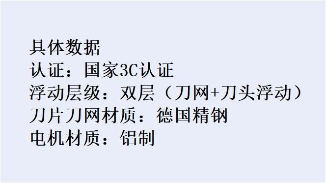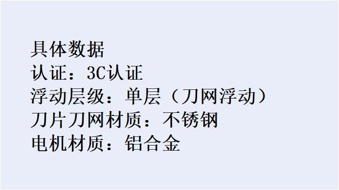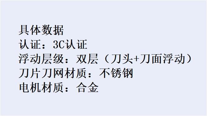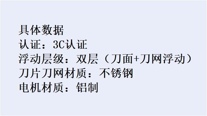 这款剃须刀的刀头有亲肤涂层,剃须很舒适。不过,刀头的浮动层级、刀片材质与数量以及切割锋利度等方面做进一步优化,产品的剃须效率会更好。