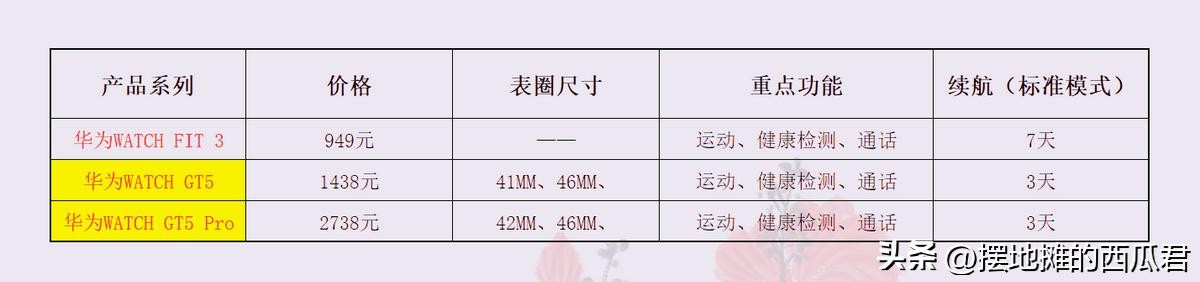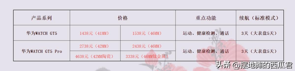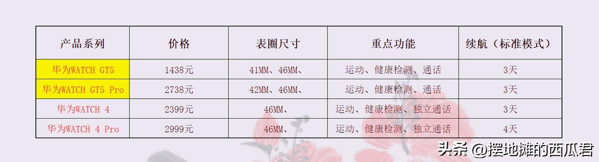 以上就是当前整个新款watch GT5 系列手表的一个详细信息了,大家可以简单的做个对比参考。