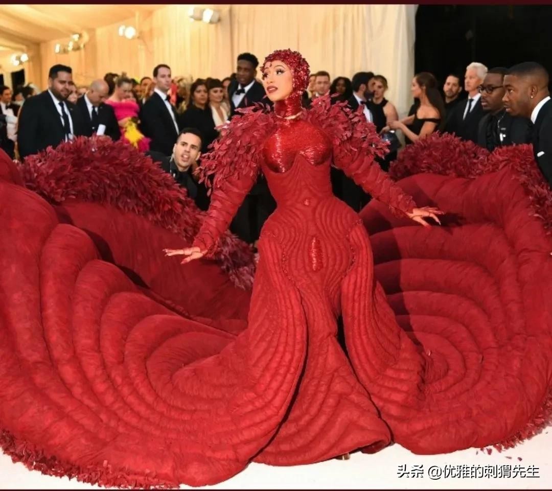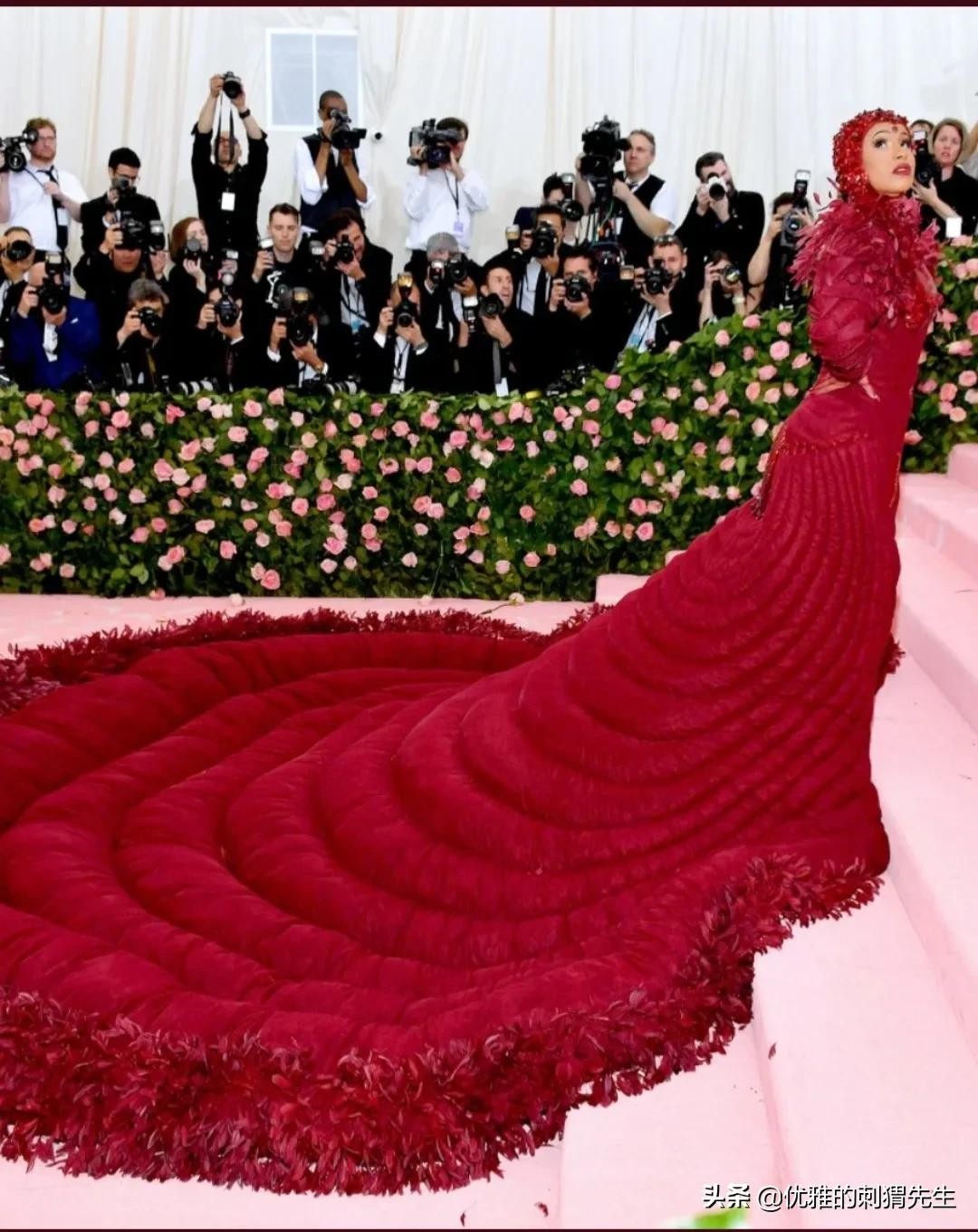 这次卡迪·碧的服装,与她的死对头麻辣鸡在2018年MetGala(主题为:[Heavenly Bodies:Fashion and the Catholic Imagination]天赐之体:宗教与时尚狂想)上的那套很像。
