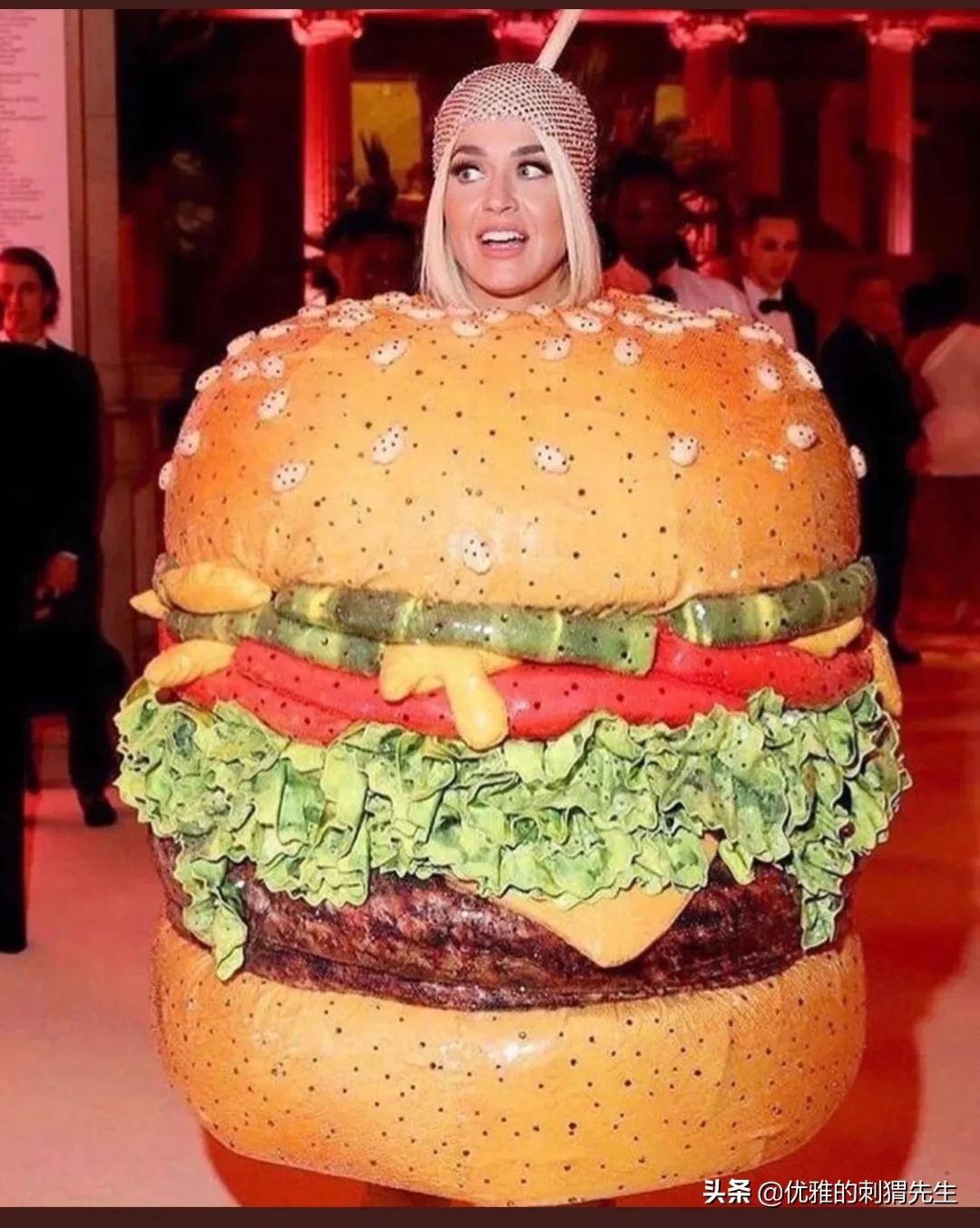 而走完红毯后,水果姐又变成一个汉堡包,参加之后的晚会。