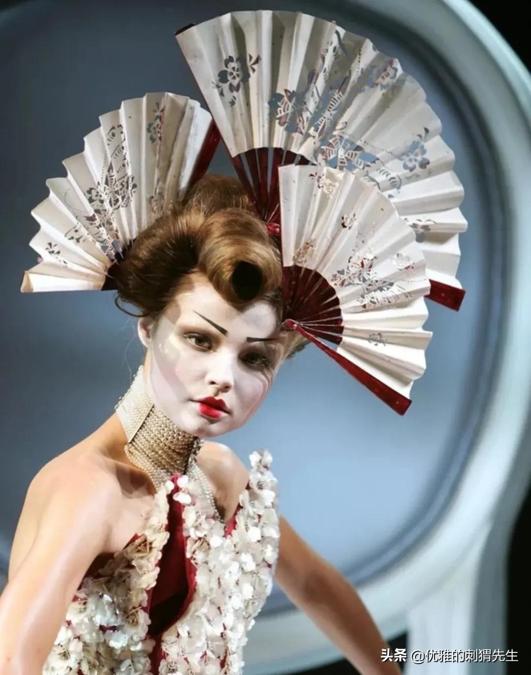 个人觉得多个帽子的设计和海盗爷在Christian Dior 2007年发布的“蝴蝶夫人”春夏高定系列里的一套“多个扇子”的风格很像。