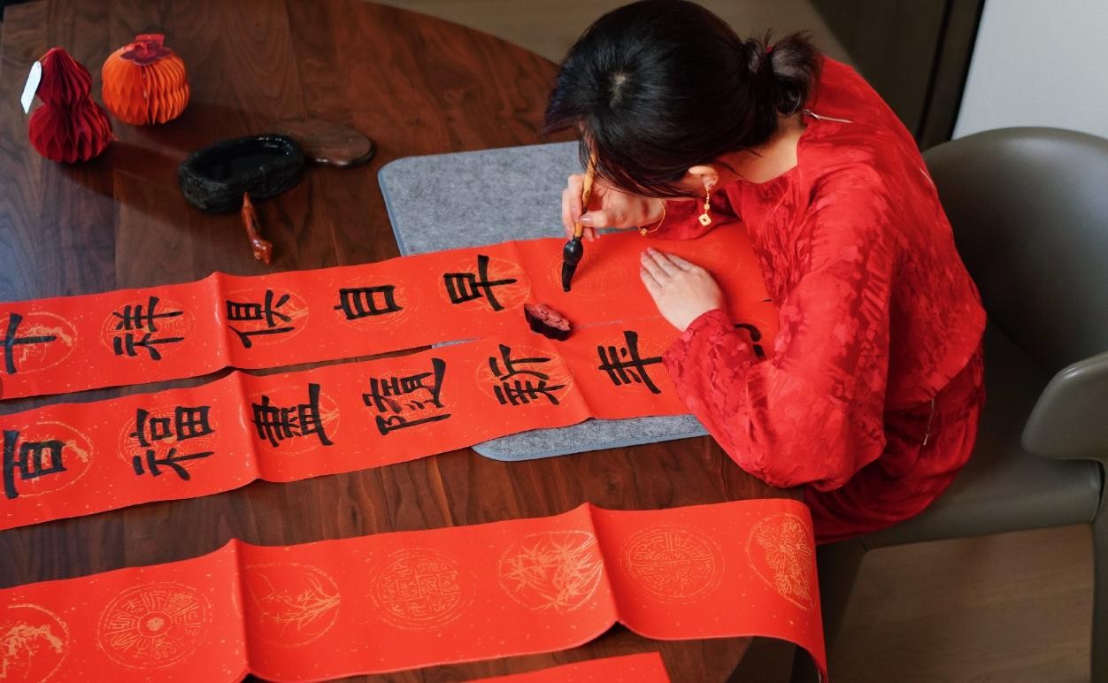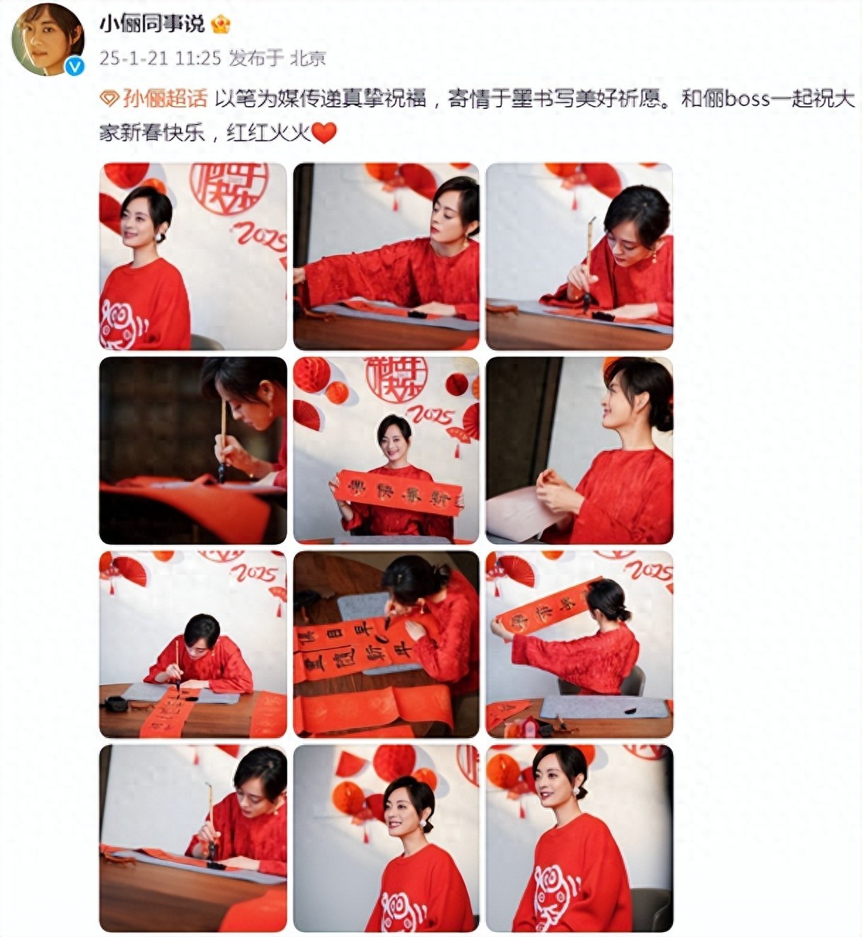 工作室还贴心的配文:“以笔为媒传递真挚祝福,寄情于墨书写美好祈愿。和俪boss一起祝大家新春快乐,红红火火。”