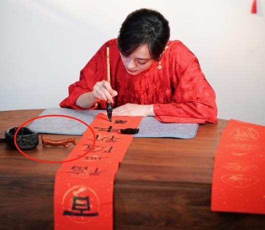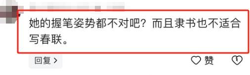 不过有部分网友看到孙俪晒出的这幅照片中忍不住吐槽道:“她的握笔姿势都不对吧?而且隶书也不适合写春联。”