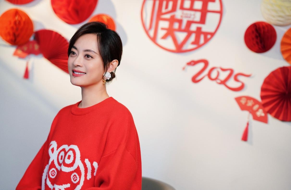 大片中孙俪一身红衣,坐在装扮特别喜庆的屋子里,简直不要太喜庆了,瞬间过年氛围就扑面而来。