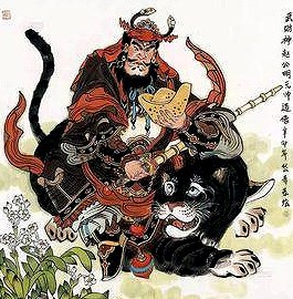 东汉时,金龙如意正一龙虎玄坛真君赵公明赵玄坛云游到此,收黑虎为骑,一手执银鞭一手执元宝,统帅招宝天尊萧升、纳珍天尊曹宝、招财使者陈九公、利市仙官姚少司四神,荡寇除魔,降服六大烁罗鬼国,保境安民,造福一方百姓。