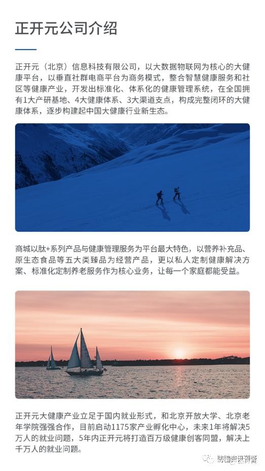 十分巧合的是,企业成立于2020年8月,恰好在北方基因涉传被罚一个月后。单从爱企查资料来看,正开元和北方基因似乎在其他方面关联不大,但正开元微信公众号上的企业介绍却似曾相识,两者都是打着健康产业的幌子,销售小分子肽系列产品。