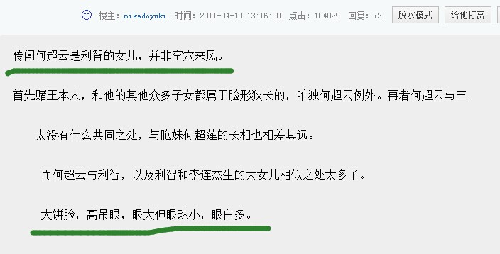 不过有人说何超云疑似是利智的亲生女儿,,天涯上也有人在讲