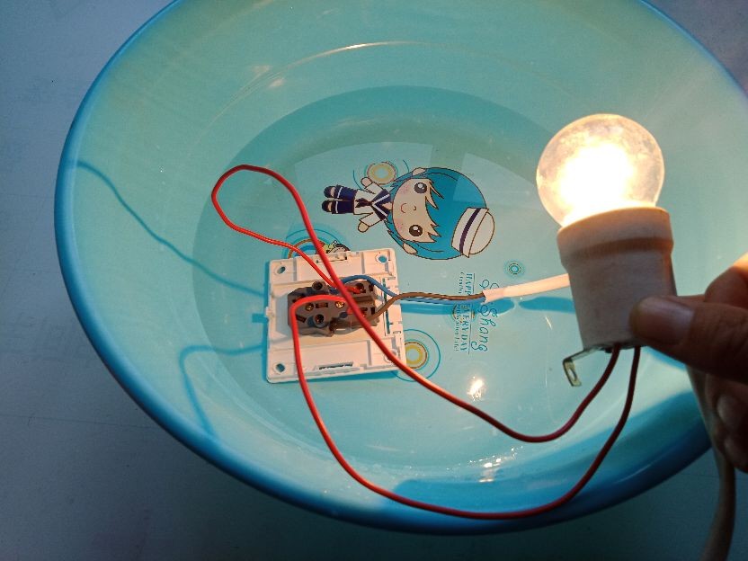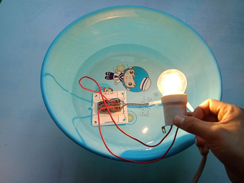 @人人能科普,处处有新知哈喽大家好!前段时间村里组织了一次展销会,有各种各样的的物品,也有一些稀奇的东西,村里很多乡亲们都没见过,在乡亲们眼里这些是高科技,是很神奇的现象。展销会上围观群众最多的就是插座放进水盆里,插在插座上的灯还发亮。甚至推销人员还把手放到带电的水盆里,人不会触电,还用手摸水中的插座。推销人员轻松自如的演示,围观的乡亲们纷纷议论,有的人说买个这样的灯泡回家用十年八年都用不坏,有的人说这个灯泡是节能灯,买回家装上一年能省不少电费,还有的人说这是外地人骗我们农村人,但就是说不上它的原理是什么,无法揭开这个骗局。那今天我就和大家科普一下,首先我们准备水、塑料盆、插座、灯泡、还有220V的家用电源,需要重点和大家声明一下,放水的容器不能是导电的容器,比如:铁质容器、不锈钢容器等是不允许的。然后我把这个带电的插座(AC220V)放到水里面,插座放进去水里面,让水把插座都掩埋,发现水里面的这个插座不会发生短路,是很正常的现象,大家觉得是不是很神奇?而且还把这个灯泡插入水中的插座,灯泡不但不会损坏,而且还会发亮,那这到底是不是真的?我可以很绝对的告诉你,这是真实存在的