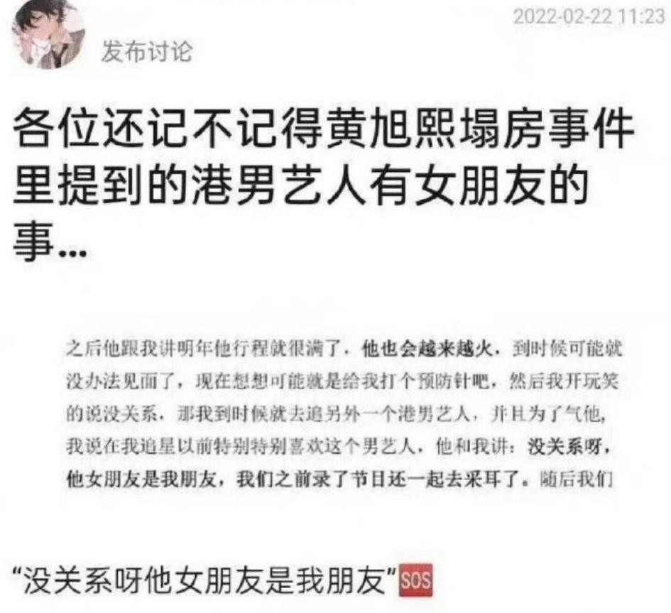 黄旭熙就曾经在社交平台上爆料过某香港艺人的现任女友,从描述中我们能够看出玄机,如果是恋人关系,两人相爱的时间好像已经有一段时间了。