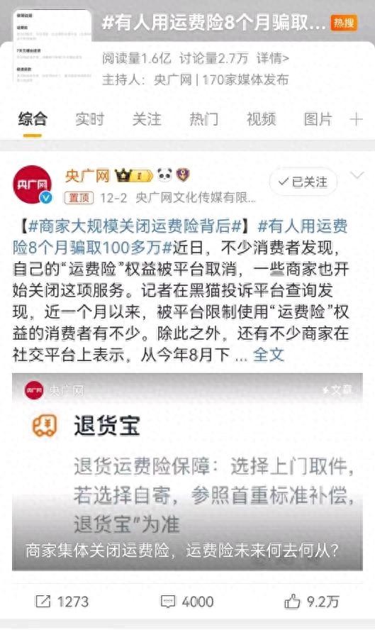 前段时间,“有人用运费险8个月骗取100多万元”的话题冲上热搜,两名人员通过虚构交易,并随单购买“大件退货运费险”保险产品,骗取每单250元的理赔保险金,短短8个月,共骗取理赔保险金多达100多万元。