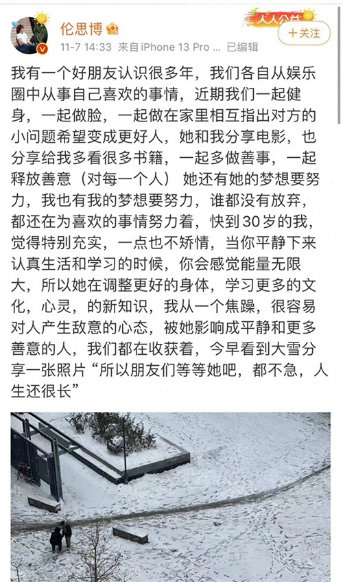 标题:影后马思纯秘密结婚?伦思博为她发声