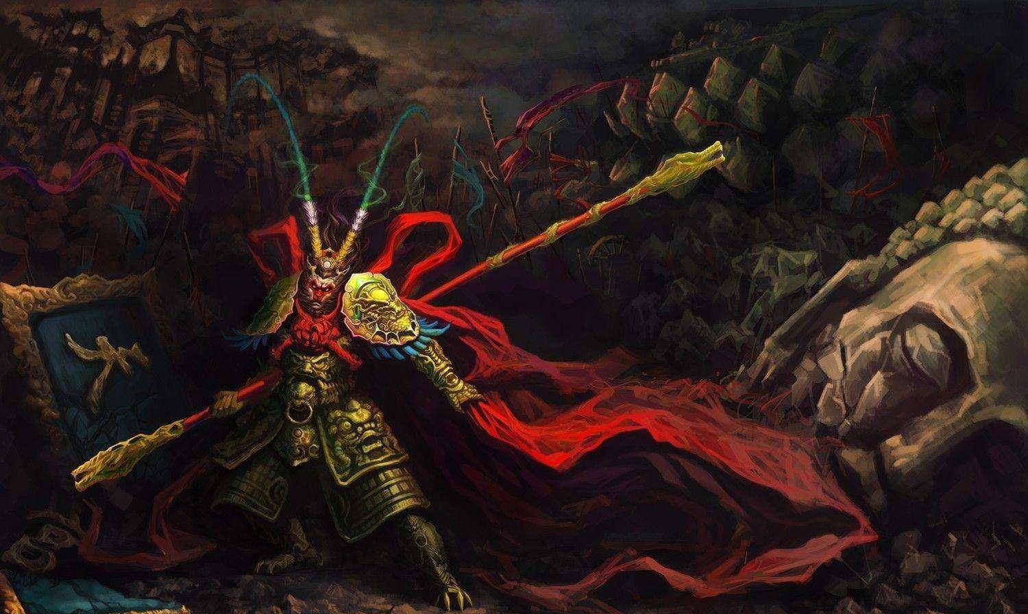 4、天地生成灵混仙,花果山中一老猿。水帘洞里为家业,拜友寻师悟太玄。炼就长生多少法,学来变化广无边。因在凡间嫌地窄,立心端要住瑶天。凌霄宝殿非他久,历代人王有分传。强者为尊该让我,英雄只此敢争先!