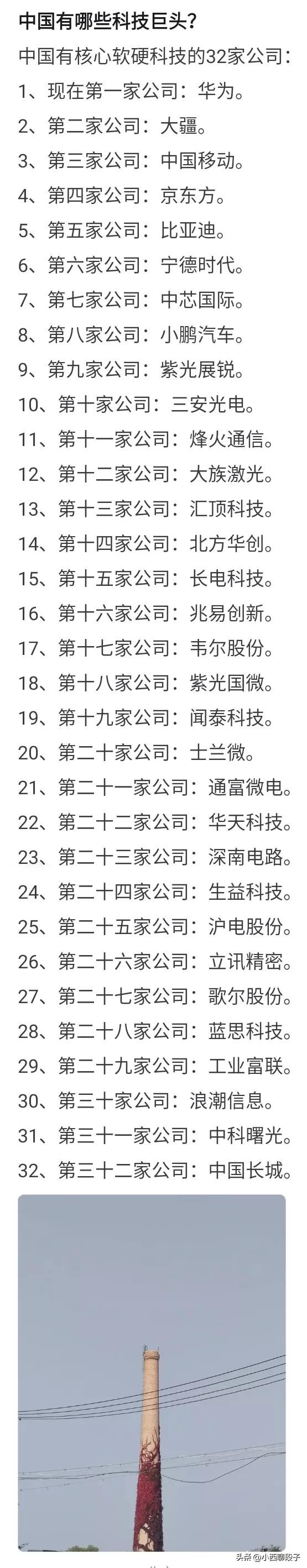 几个互联网公司还是别列了吧,他们只是赚钱的公司,真不是啥科技公司。是不是科技公司很好判断,它倒了,它做的事别人能不能轻易顶上……