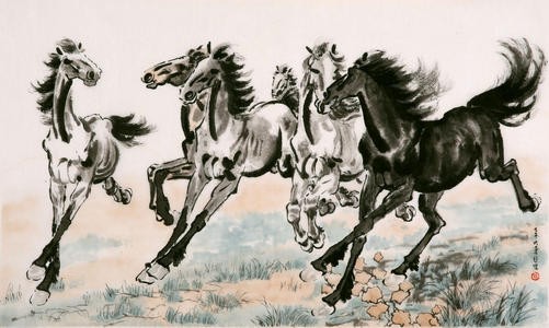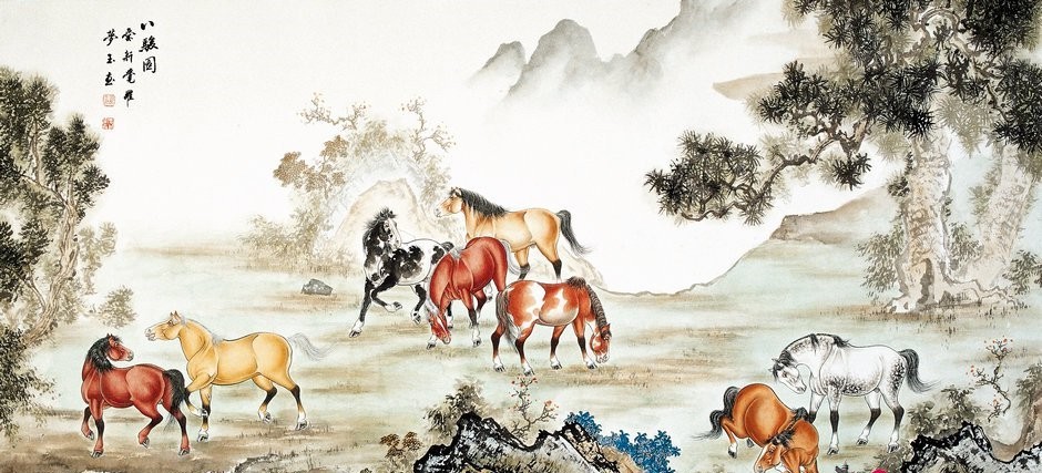 现代上海画坛知名的画家顾宝兴曾做过一幅《八骏图》。