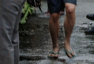 周星驰感觉非常棒,赶紧让人在路上洒点水,这样穿拖鞋走路更过瘾。