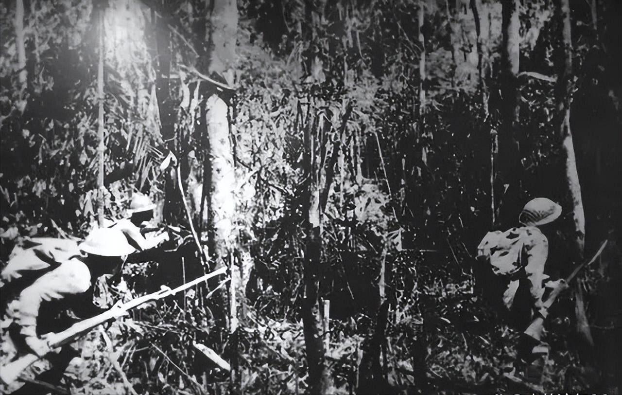 日军被迫退入到茂密的丛林之中,希望借助这片原始森林的掩护躲避敌人的追击。