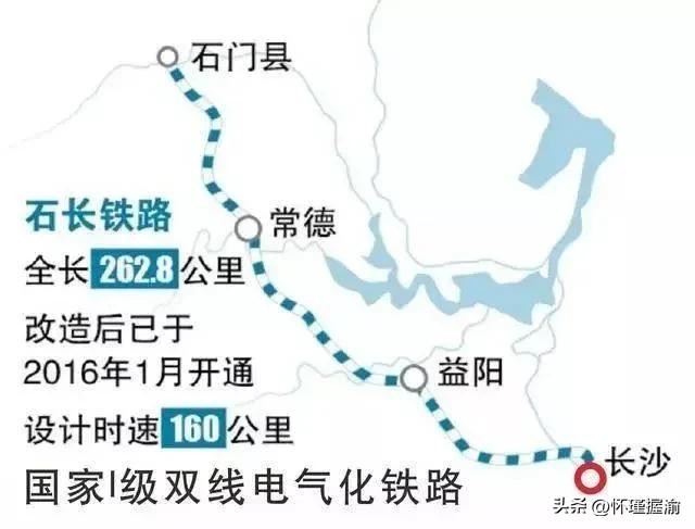 石长铁路:石门县北站至长沙站,全长263公里,最高时速为160公里。