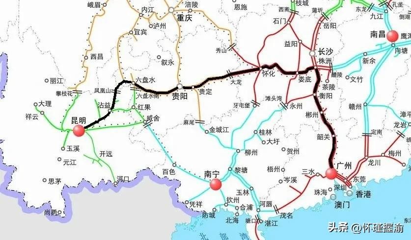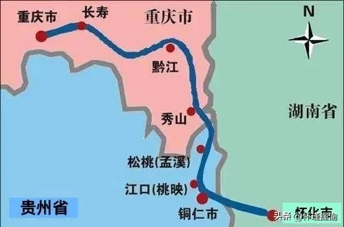 两地间的第一条铁路线路,就此形成。通过南下贵阳,再向东绕过武陵山脉主峰梵净山,经怀化抵达长沙。
