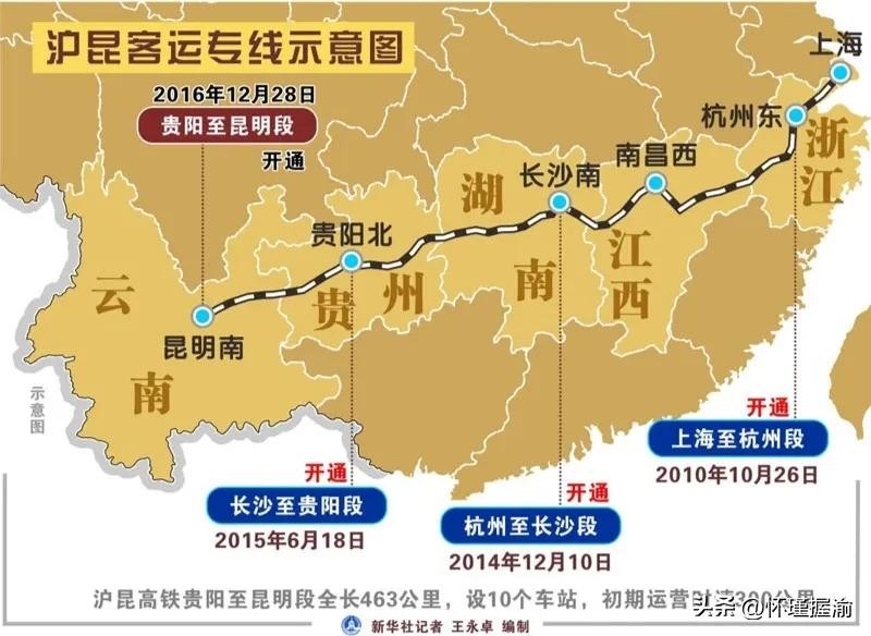 2016年12月28日,沪昆高铁全线正式通车。贵阳北站至长沙南站,全长约706公里,最高时速300公里。