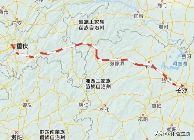 重庆和长沙之间,终于形成了一条全程最高时速300公里以上的线路,尽管距离并不是最短的。