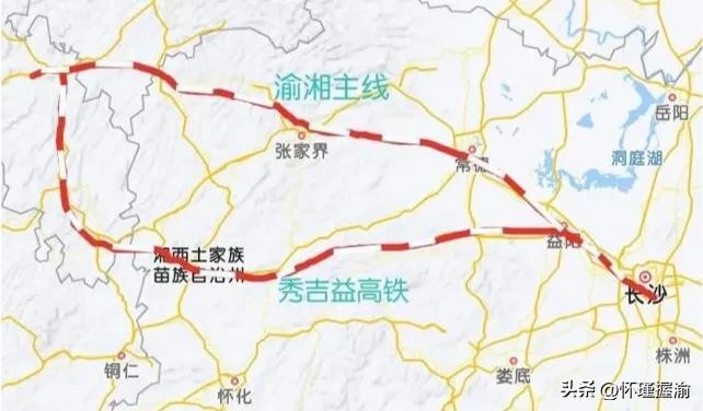 重庆和怀化之间,因此多了一条捷径。这条途经黔江至怀化的线路,从武陵山脉中部穿过,比途经贵阳至怀化的第一条线路距离一下子缩短了326公里。怀化站到长沙站之间的线路依然保持不变。