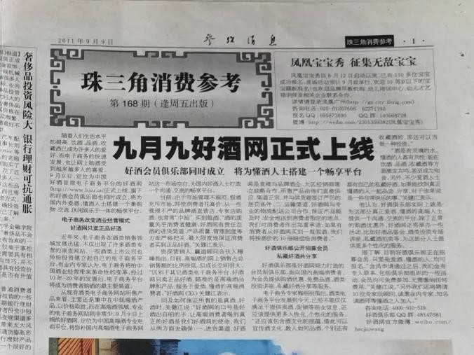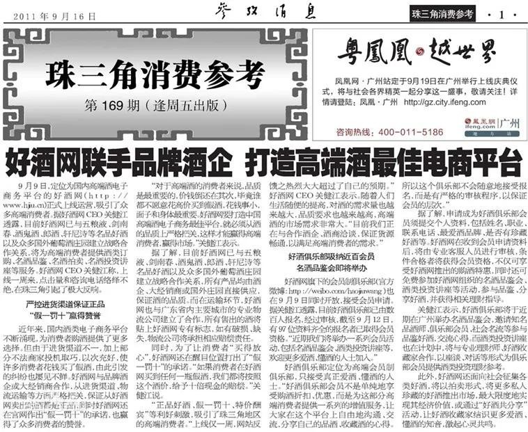 2011年09月16日,报道:好酒网联手品牌酒企 打造高端酒最佳电商平台