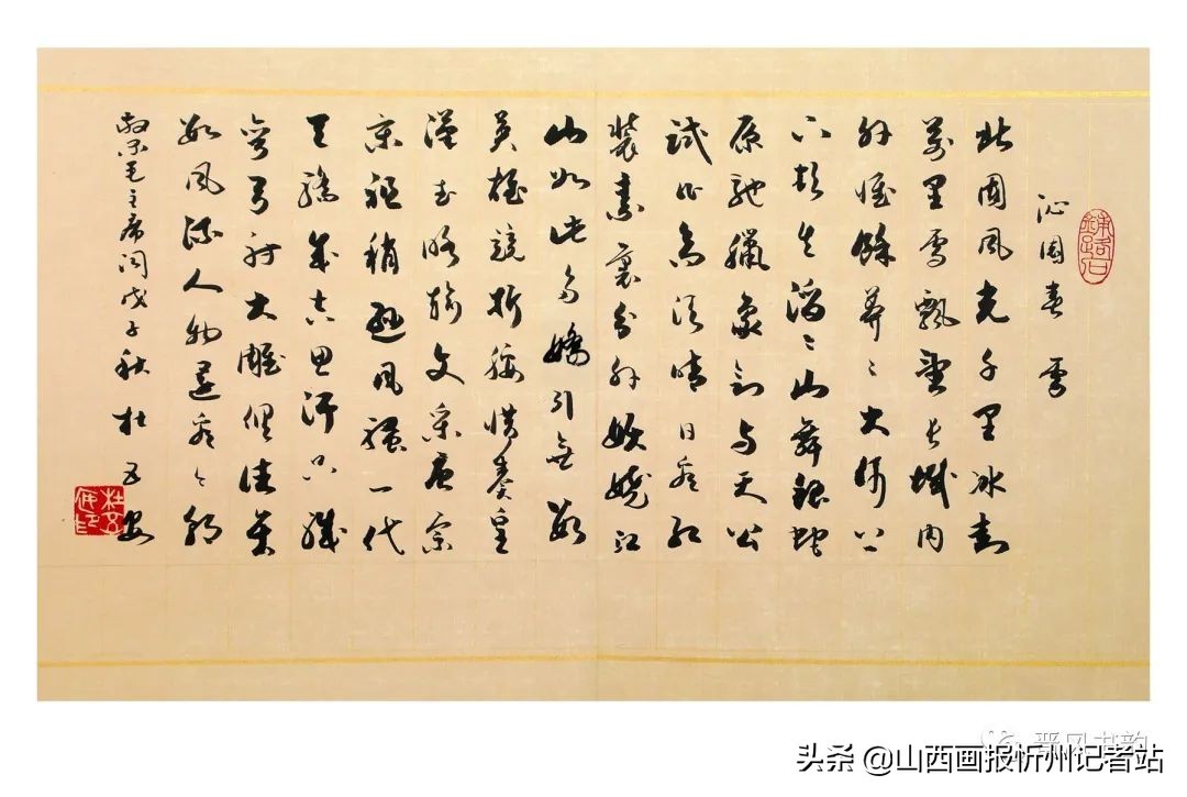 从他的小草的书法作品当中,看得出他在我们中国传统的书法作品中,尤其是二王这个范畴内,他下了很多的功夫。这个很多功夫呢,就是他把二王的这些传统的基本的技法、字法,包括结构法,包括他的字的体式法,这些技法程式,他基本上都掌握了。
