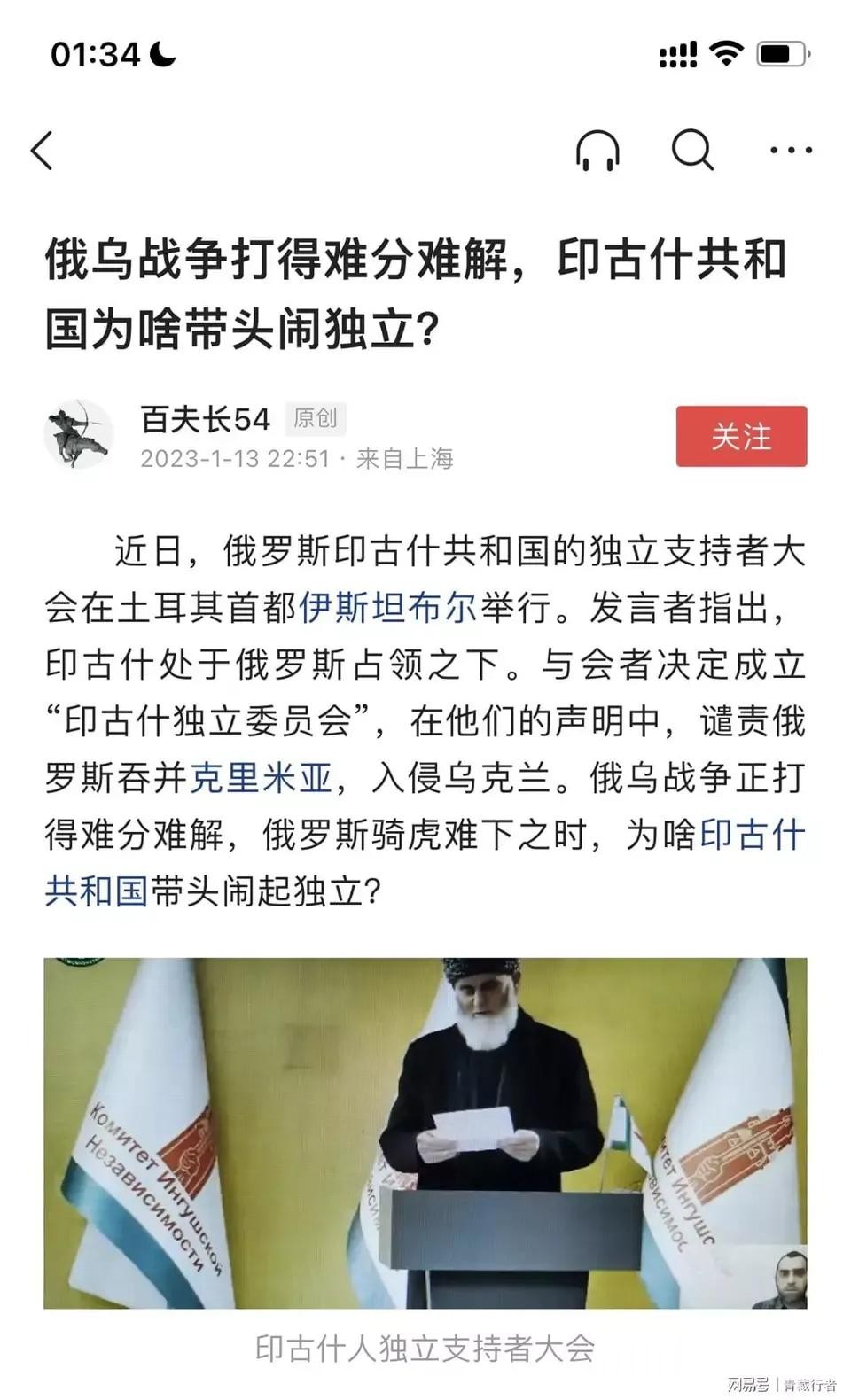 2023年1月1日,新年伊始,俄罗斯境内的印古什自治共和国突然宣布争取独立!独立宣言宣称谴责俄罗斯入侵乌克。谴责俄罗斯对叙利亚的入侵。谴责俄罗斯对格鲁吉亚的入侵。不承认俄罗斯对克里米亚半岛的占领!