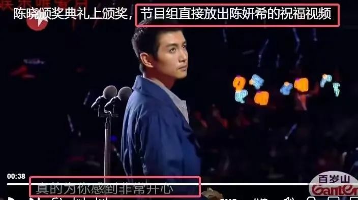 颁奖礼上,大屏幕陈妍希送祝福,陈晓双目无神,一点反应没有,